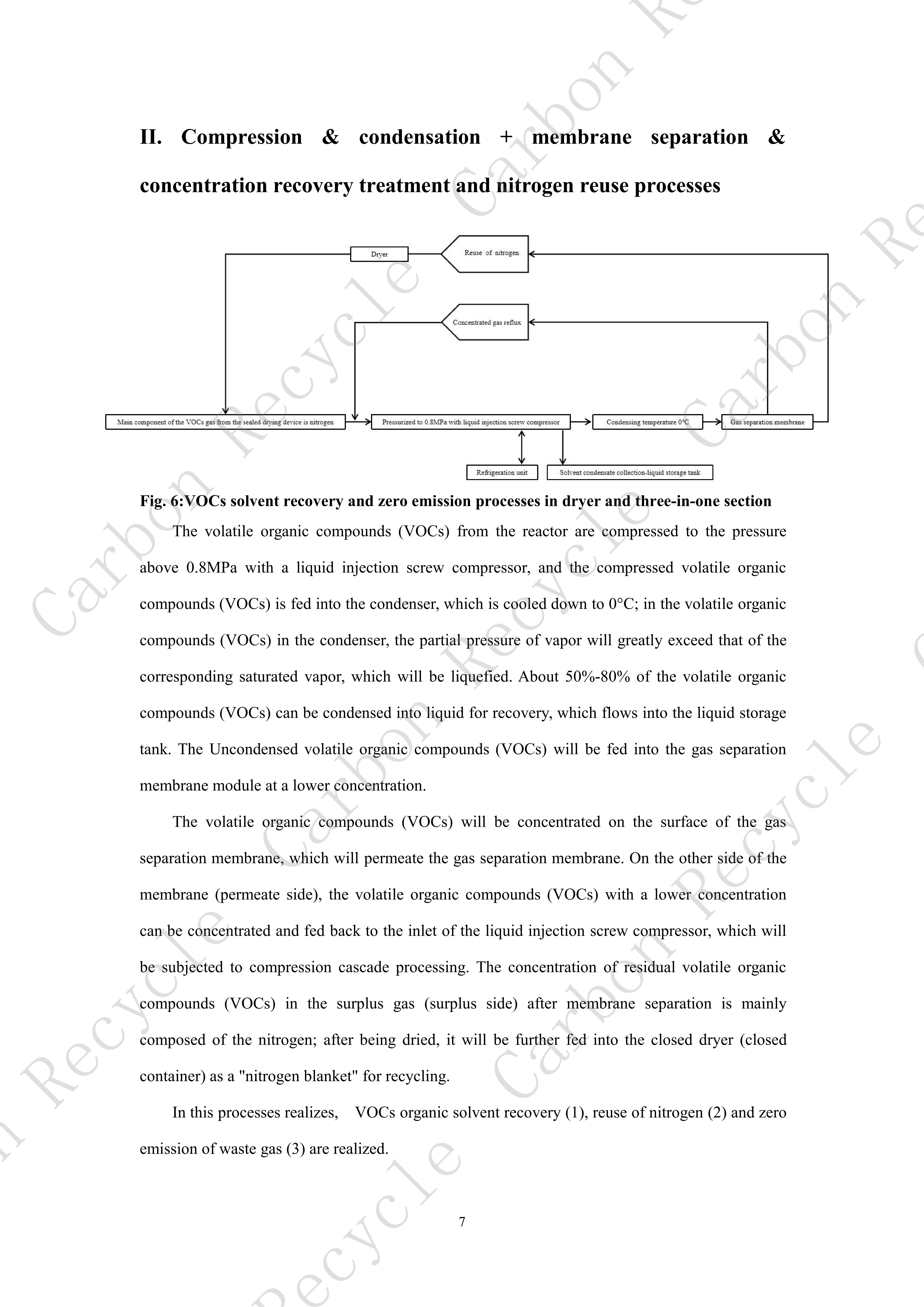 Compression & condensation + membrane separation & concentration recovery treatment and nitrogen reuse processes